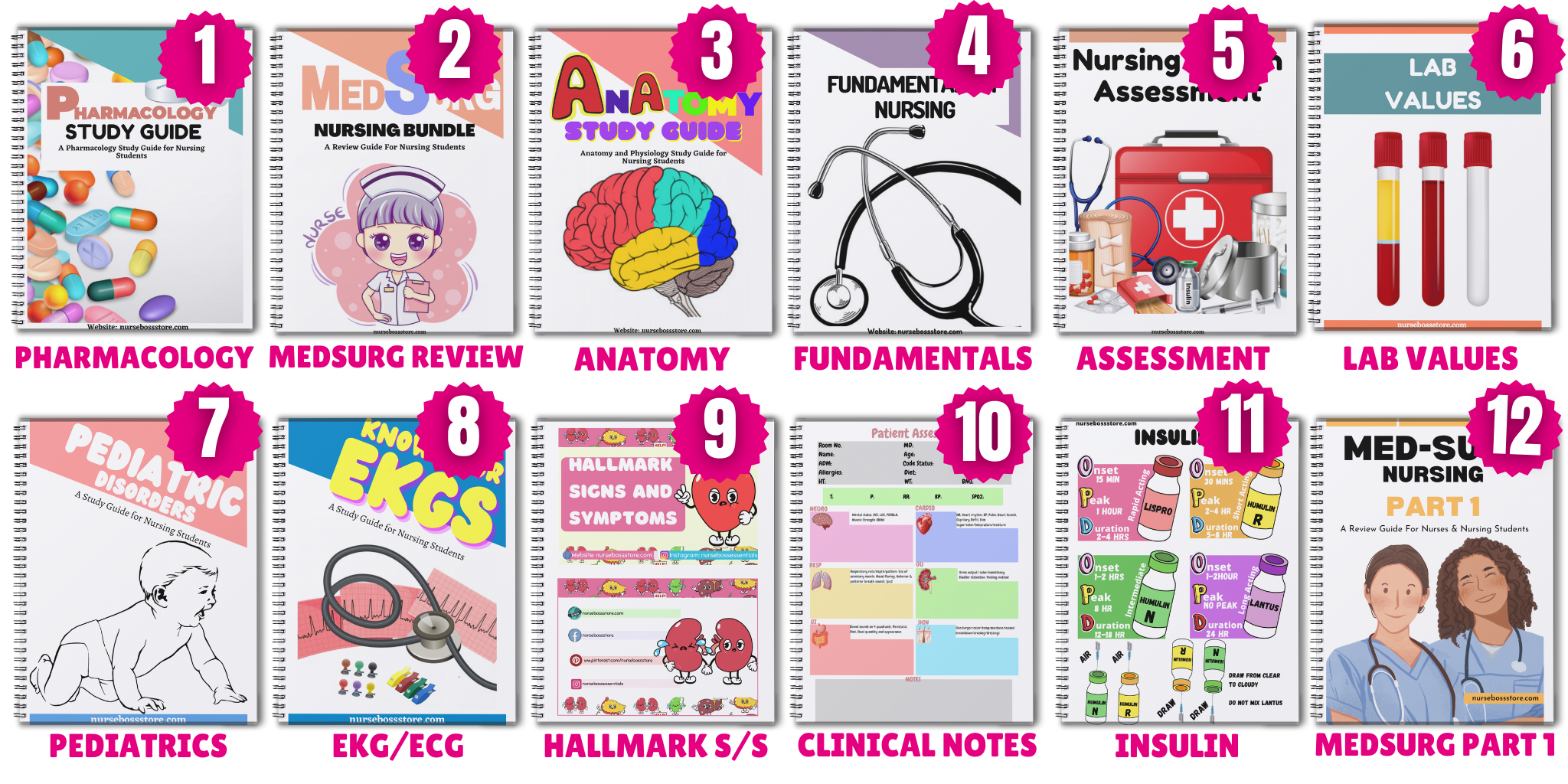 The bundle includes Anatomy, MedSurg, Fundamentals, Pharmacology, Maternity, Pediatrics, Nursing Assessment, Clinical Templates, Burns, Hepatitis, Drug Calculations, and so much more.
