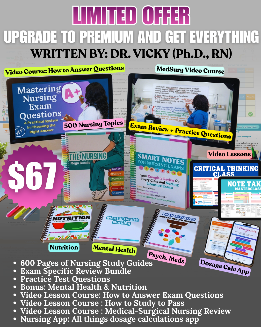 The Nursing Premium All-In-One Bundle (Digital-PDF) includes everything to help you pass nursing school and your licensure exams.